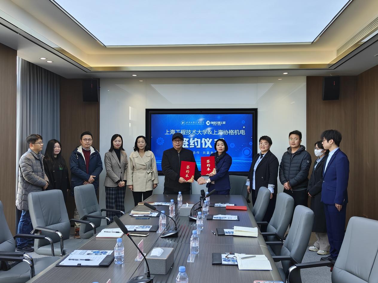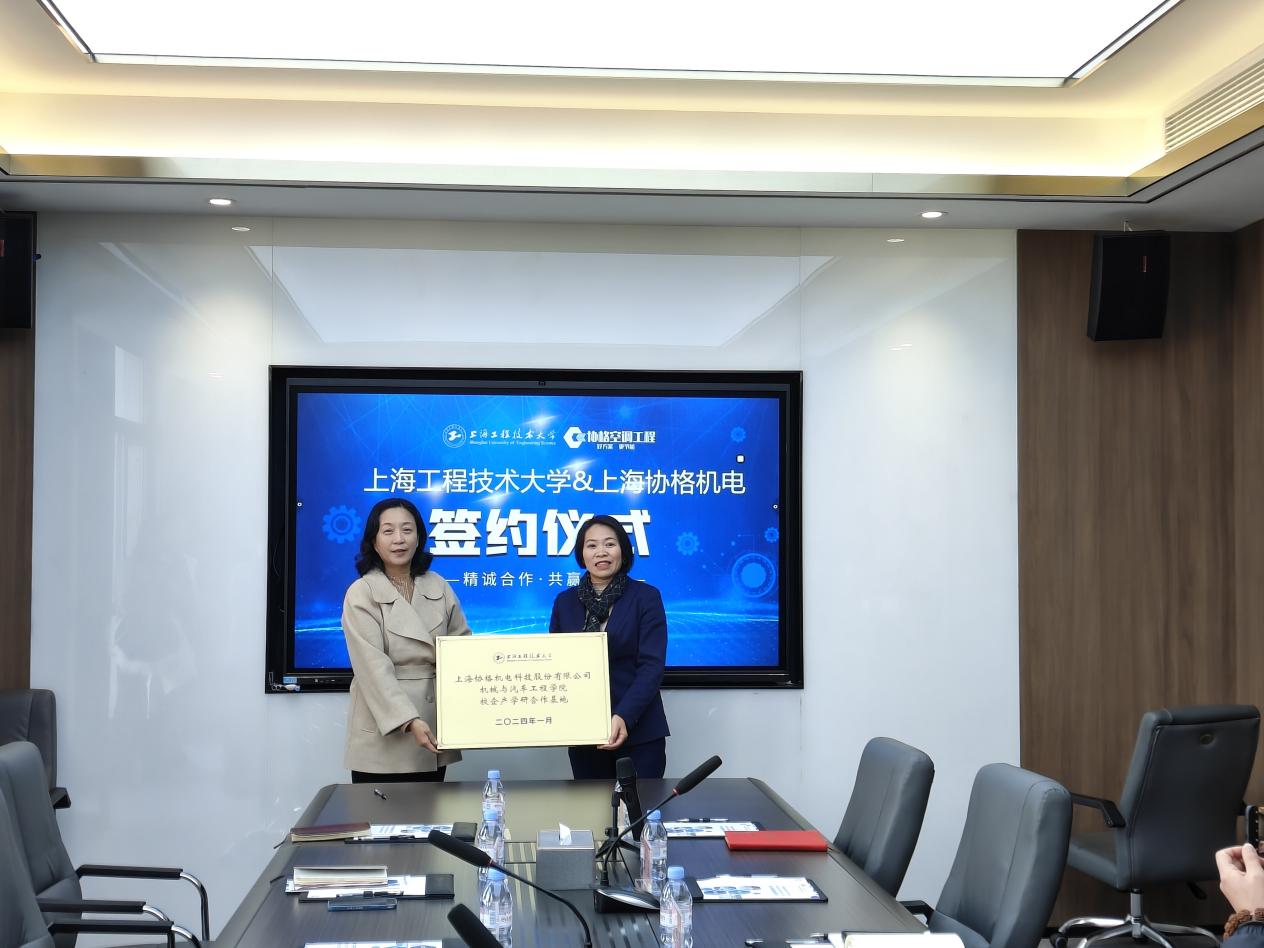会上,虞蓉书记代表学院向上海协格机电科技股份有限公司授校企产学研合作基地牌。学院能源与动力工程系主任邓胜祥教授与张美玲经理进行校企合作签约。