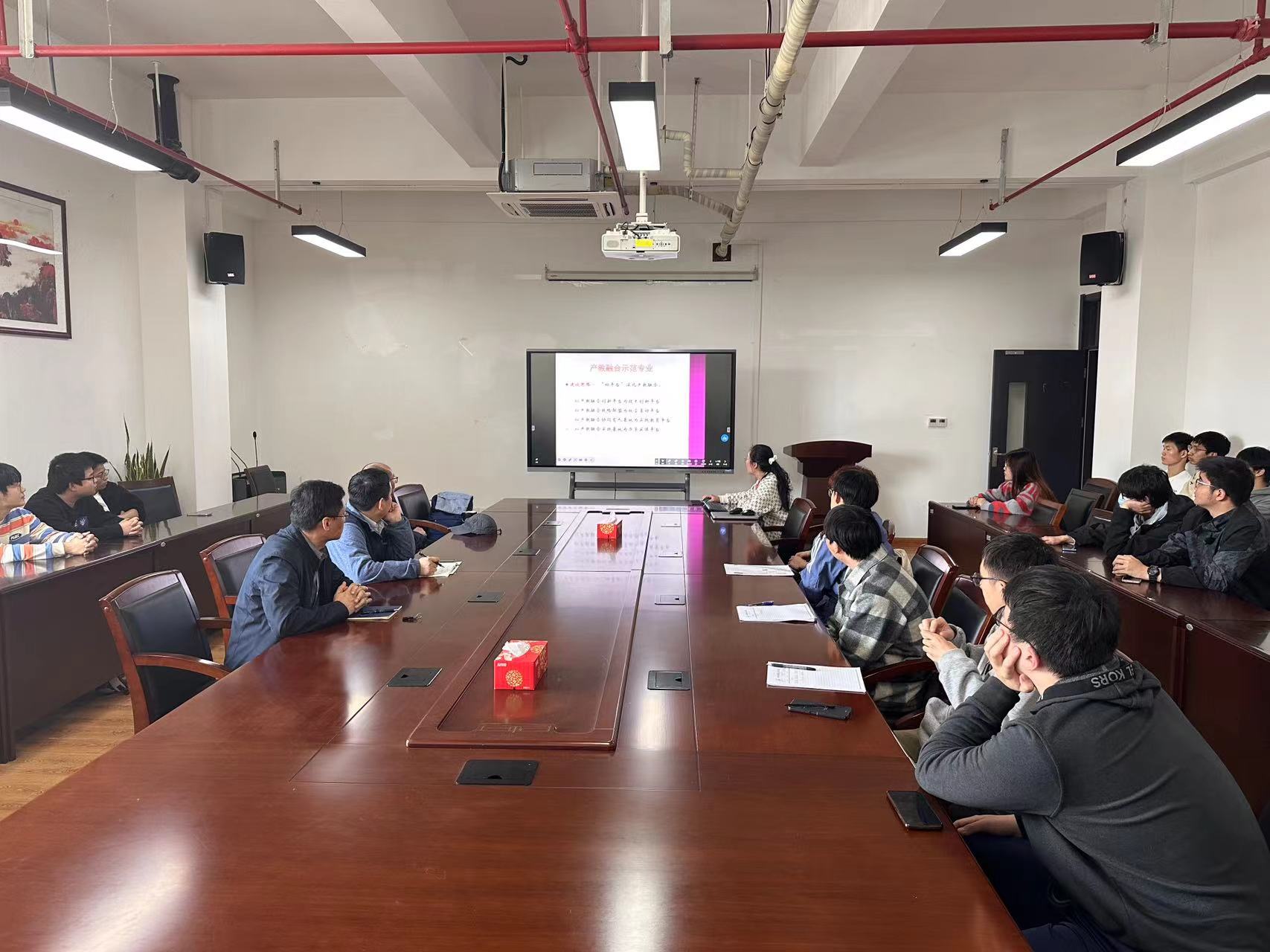马明辉介绍了产教融合专业培养计划的修订情况。罗一平强调了产教融合实施过程中的安全注意事项。黄孝慈向2022级学生进行了产教融合动员。