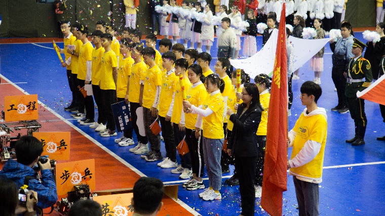 “志在鸿鹄,心如明鉴,百工不苟,躬行实践!”伴随着嘹亮的口号声,院党委虞蓉书记带领着金沙威尼斯欢乐娱人城方阵走过了主席台。方阵身着统一院服,精神抖擞,步伐整齐激昂,由我院大学生木鸢战队独立自主研发的英雄、步兵、工程机器人领队,将科创竞技精神融入体育赛事,现场展示了机器人全向移动、飞越障碍等技能,成为本届运动会上最靓丽的风景线之一。