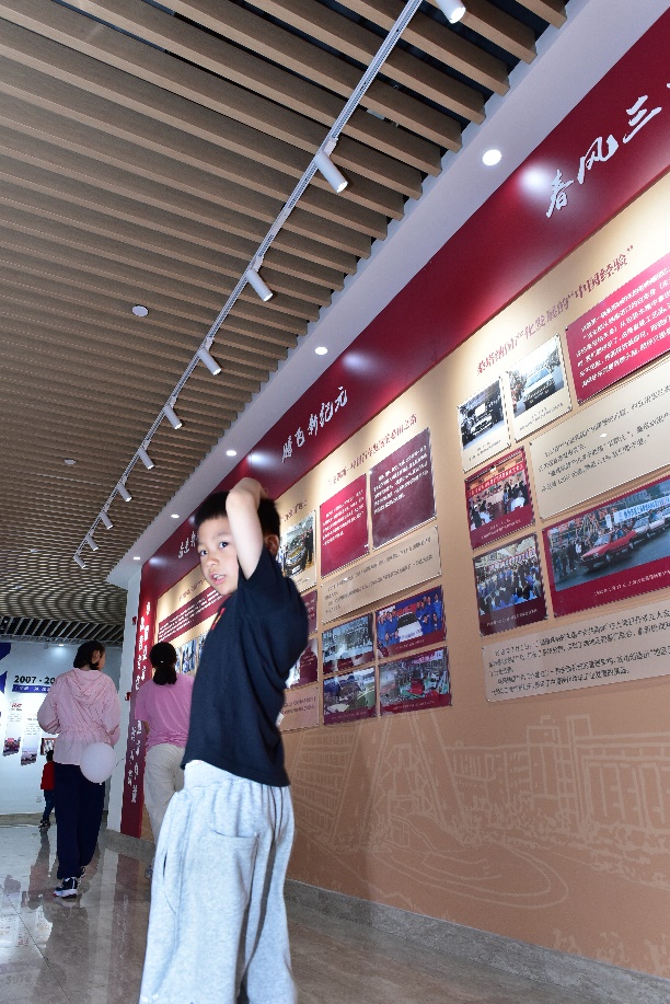 本次活动形式多样,内容丰富多彩。在交通中国党性教育长廊,大学生志愿者为“程二代”们献上了一堂沉浸式、情景式和体验式的历史课,帮助孩子们了解中国汽车工业的发展历程,学院科创的大事纪要和大学生们在科创赛场上的辉煌成就,在孩子们的心里埋下科创报国的种子。
