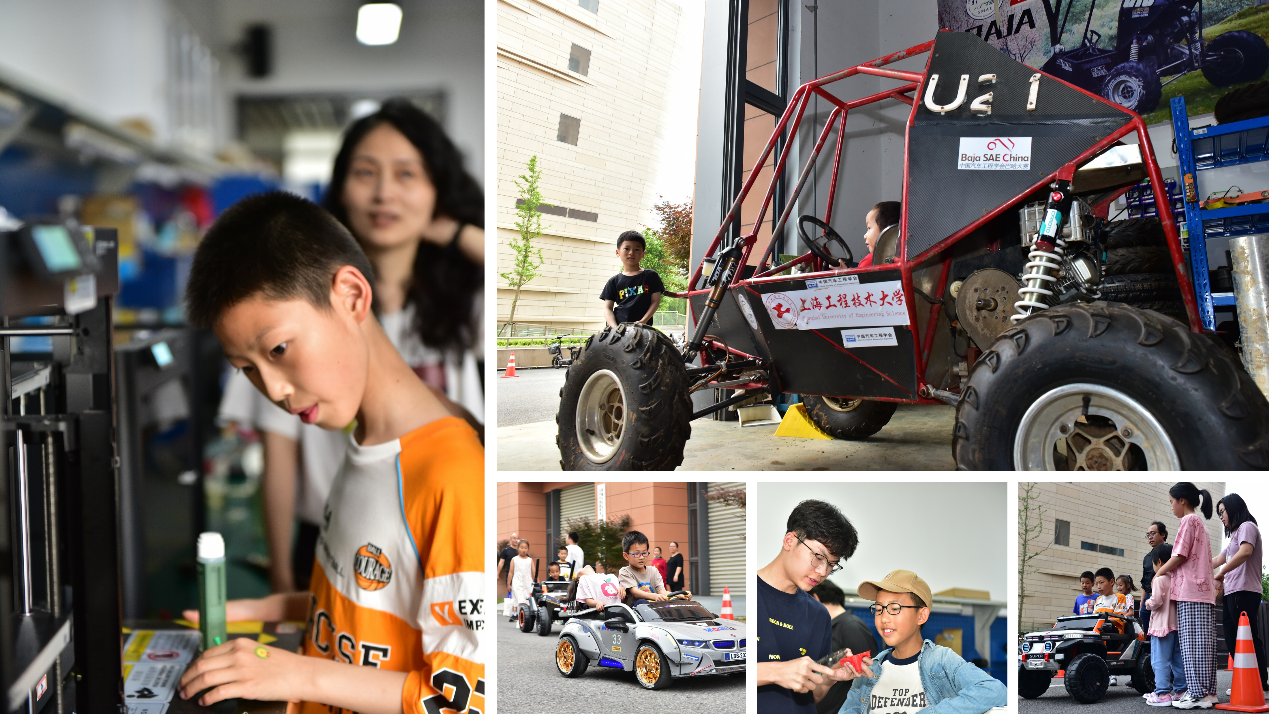 本次活动的亮点之一是参观学院的科创基地。孩子们不仅可以坐上巴哈赛车,领略翻山越岭的魅力,还能亲自上场体验模拟赛车的紧张刺激。在机器人创新工作室,孩子们还近距离体验了一次3D打印技术,并拿到了自己亲手制作的小礼品。
