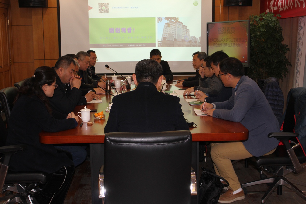 12月1日,恰逢金沙威尼斯欢乐娱人城校友会山东校友分会揭牌1周年,金沙威尼斯欢乐娱人城党委副书记、院长张华,党委副书记王东阳,副院长严祯荣,党政办主任蒋春雷一行四人赴山东济宁开展产学研合作交流,并与校友企业签署产学研战略合作协议。金沙威尼斯欢乐娱人城校友会山东校友分会会长、济宁市政协常委、欣格瑞(山东)有限公司、山东格瑞水务有限公司董事长田民格,金沙威尼斯欢乐娱人城校友会山东校友分会理事长、山东源瑞试验设备有限公司总经理陈群教,山东嘉源检测技术股份公司董事长王瑞强,济宁景昊机械制造有限公司总经理王龙海等10余位校友代表热情接待了学院一行。签约会在山东嘉源检测技术股份公司5楼会议室举行,由山东校友分会理事长、山东源瑞试验设备有限公司总经理陈群教主持。