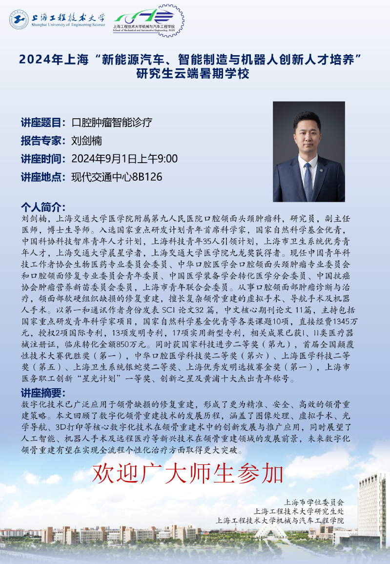 研究生云端暑期学校讲座预告——《口腔肿瘤智能治疗》