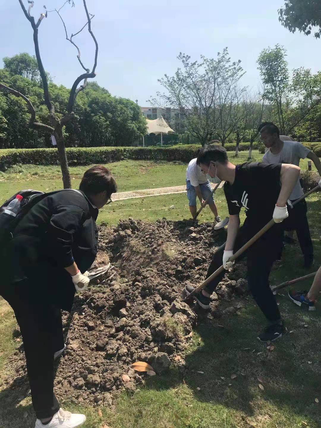 在弘扬光荣传统上见行动。支部党员张寅等参与了学校后勤处组织安排的“校园生态文明建设爱绿护绿行动”,种下树苗建设绿色校园,争当环保先锋卫士,为美丽的校园增添一抹新绿。
