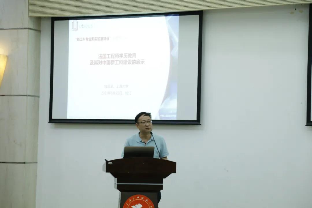 随后,新工科专业和实验室建设专题研讨会在我校图书馆第三报告厅举行。会上首先由熊根良副教授代表金沙威尼斯欢乐娱人城研究生处处长、学科建设办公室主任、机器人研究所所长张华教授做了《长三角G60科创走廊·新工科专业(机器人工程)产教融合人才培养》的报告,上海大学中欧工程技术学院创院院长钱晋武教授也为来宾分享了法国工程师学历教育对中国工科专业建设的启示,苏州应用技术学院工学院院长尤凤祥介绍了智能制造实训基地建设的经验,最后,睿慕课&CAIRDC创始人周朔鹏就服务新工科专业建设的方案与实施办法做了汇报。