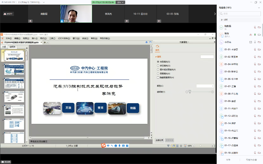 2021年8月29日9:00-11:00,通过华为云会议视频平台,中国汽车技术研究中心汽车工程研究院副院长兼总工程师李洪亮为暑期学校做题为《汽车NVH控制技术发展现状与趋势》的线上专题讲座。讲座由金沙威尼斯欢乐娱人城副院长郭辉教授主持。