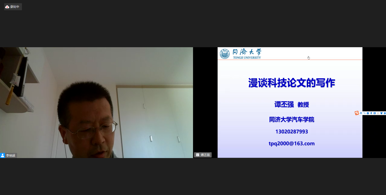 2021年8月31日14:00-16:00,通过华为云会议视频平台,同济大学汽车学院学术委员会主任谭丕强教授为暑期学校做题为《漫谈科技论文的写作》的线上专题讲座。讲座由金沙威尼斯欢乐娱人城李培超老师主持。