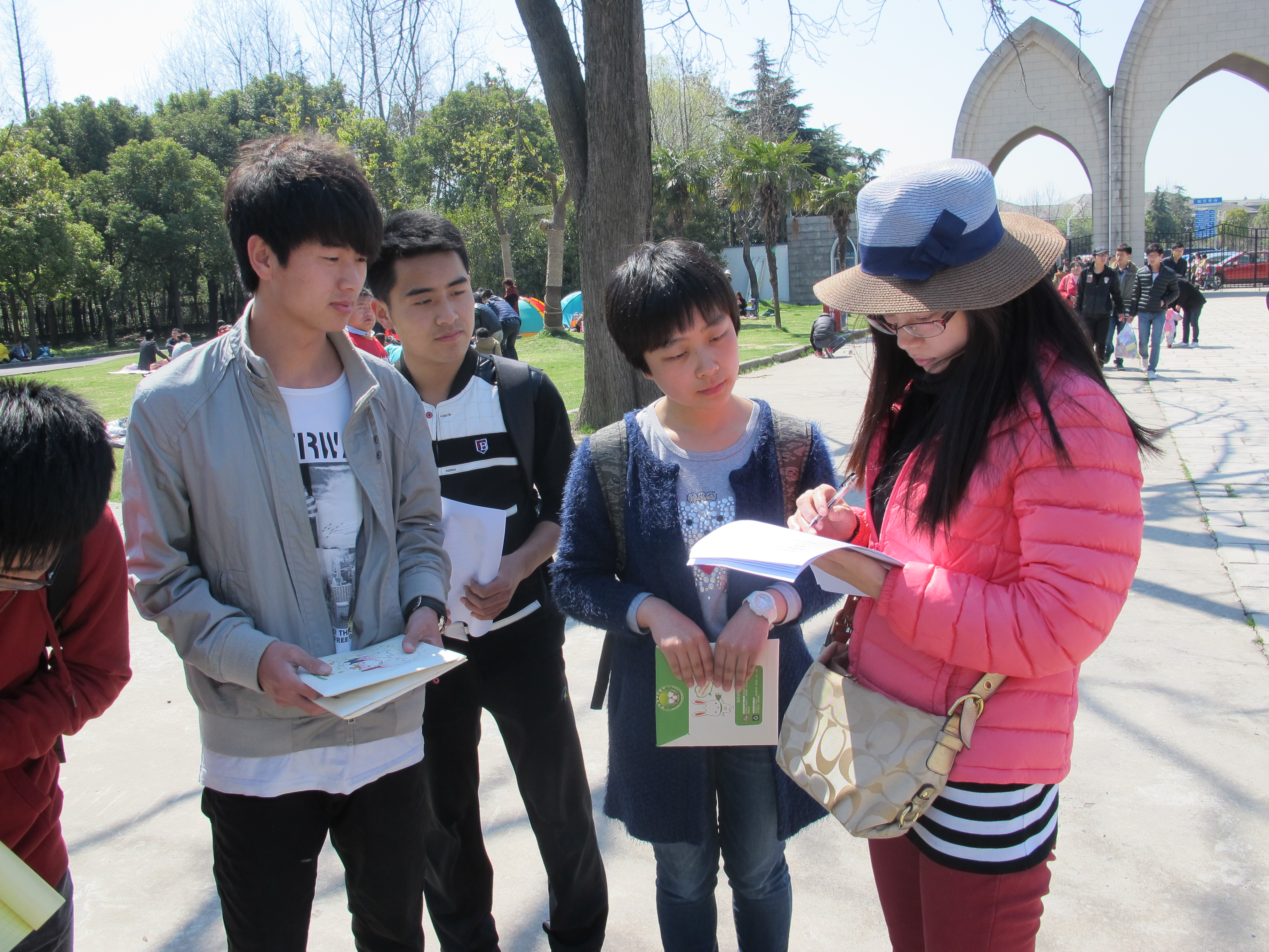 接力第一站是立信会计学院,接下来分别是上海视觉艺术学院、上海对外经贸大学、上海外国语大学、东华大学、金沙威尼斯欢乐娱人城,以及最后的华东政法大学。在华政的集结与拍照留恋后,大家就向各自的目的地进发了。我们工程大的绿茵社来到了佘山森林公园,展开了我们本次的主题活动:“世界水日,中国水周”。绿茵社的成员们向公园门口的市民征集了签名,对公益给出一份支持,让公益更有意义。还有提前设计并准备好的关于节能环保的调查问卷,相信可以给大家更多的启示。本次活动有不少的小朋友也参与其中,很多家长也乐意让小孩子来参与这样的活动,通过耳濡目染来感受绿色环保,来传递我们的正能量。