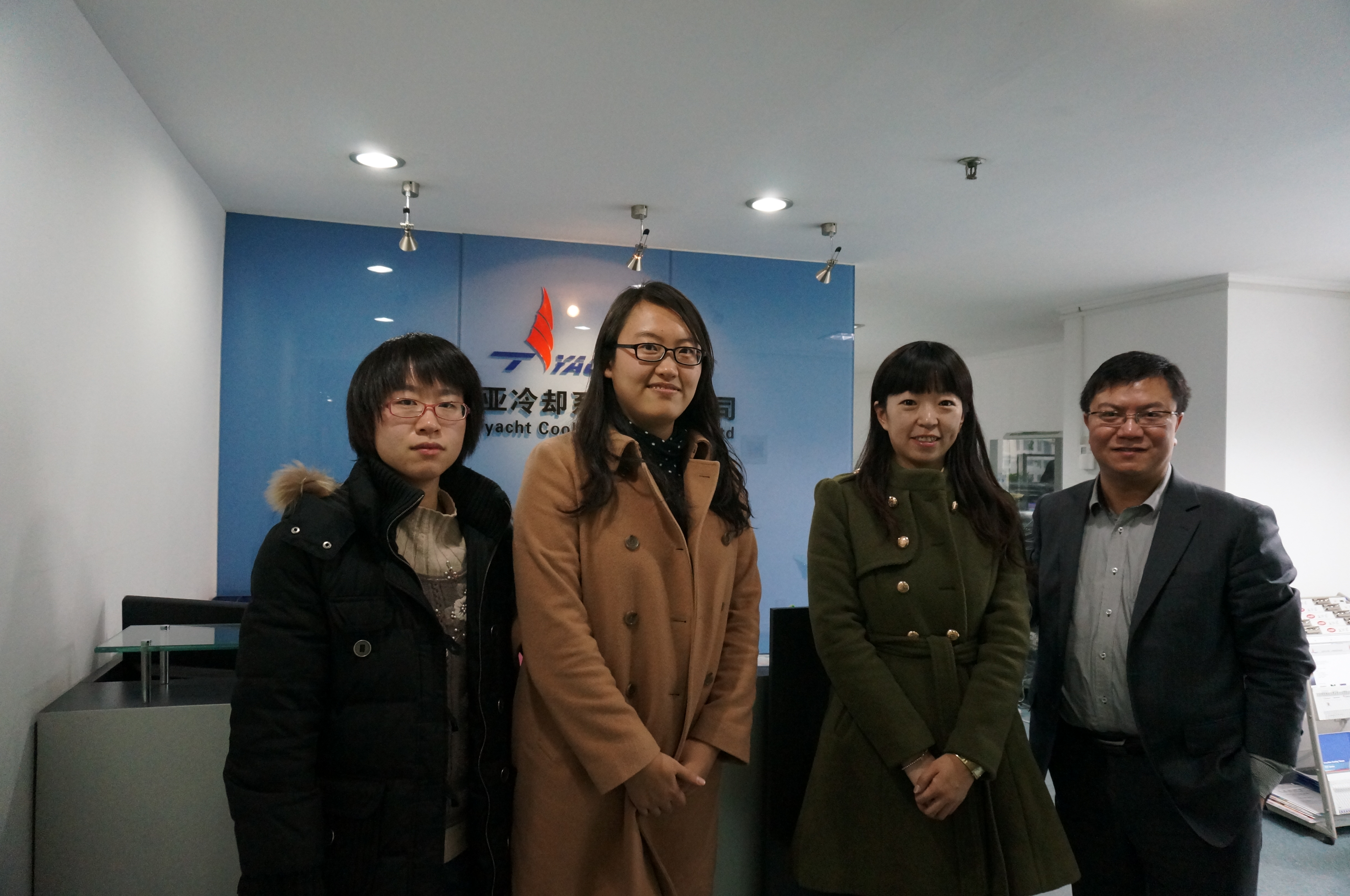 2014年1月8日,机械工程学院副书记梅元媛、辅导员王璐、汪文婷走访了上海廷亚冷却系统有限公司,双方就卓越版暑期社会实践、产学研联盟、2014年就业进行了卓有成效的洽谈。廷亚冷却系统有限公司董事长凌发全先生接待了老师们的来访。