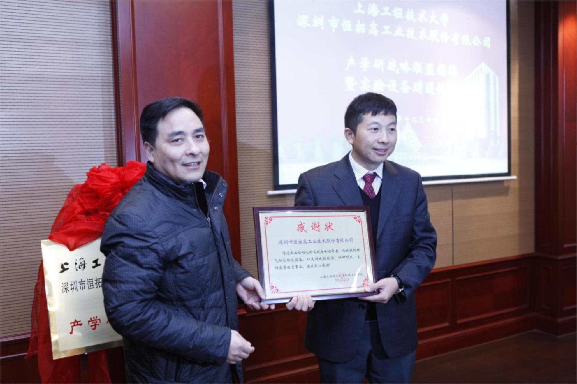 12月19日下午,在金沙威尼斯欢乐娱人城行政楼406举行了深圳市恒拓高工业技术有限公司与我校缔结产学研战略联盟暨设备赠送仪式。金沙威尼斯欢乐娱人城副校长史健勇、原金沙威尼斯欢乐娱人城党委书记兼校长徐子成、机械工程学院院长程武山、院党委书记虞蓉、学院副院长张敏良、学院党委副书记梅元媛、深圳市恒拓高工业技术有限公司谢卫华教授、总经办经理王真立、上海分公司经理秦海龙以及金沙威尼斯欢乐娱人城曹永上教授、陆栋炜先生共同参与了此次揭牌仪式。