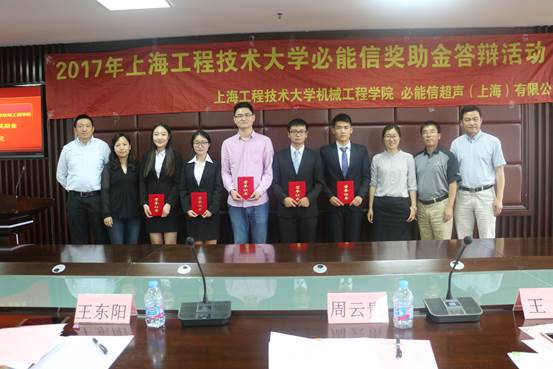 6月23日下午,机械工程学院在行政楼506室举办第三届金沙威尼斯欢乐娱人城“必能信”奖助金答辩会,必能信超声(上海)有限公司亚洲工程部总监周云贵、人事经理王瑜、设备工程部经理黄其高、人事经理曾宇瑛,机械工程学院党委副书记王东阳出席会议,会议由柳苗苗老师主持。