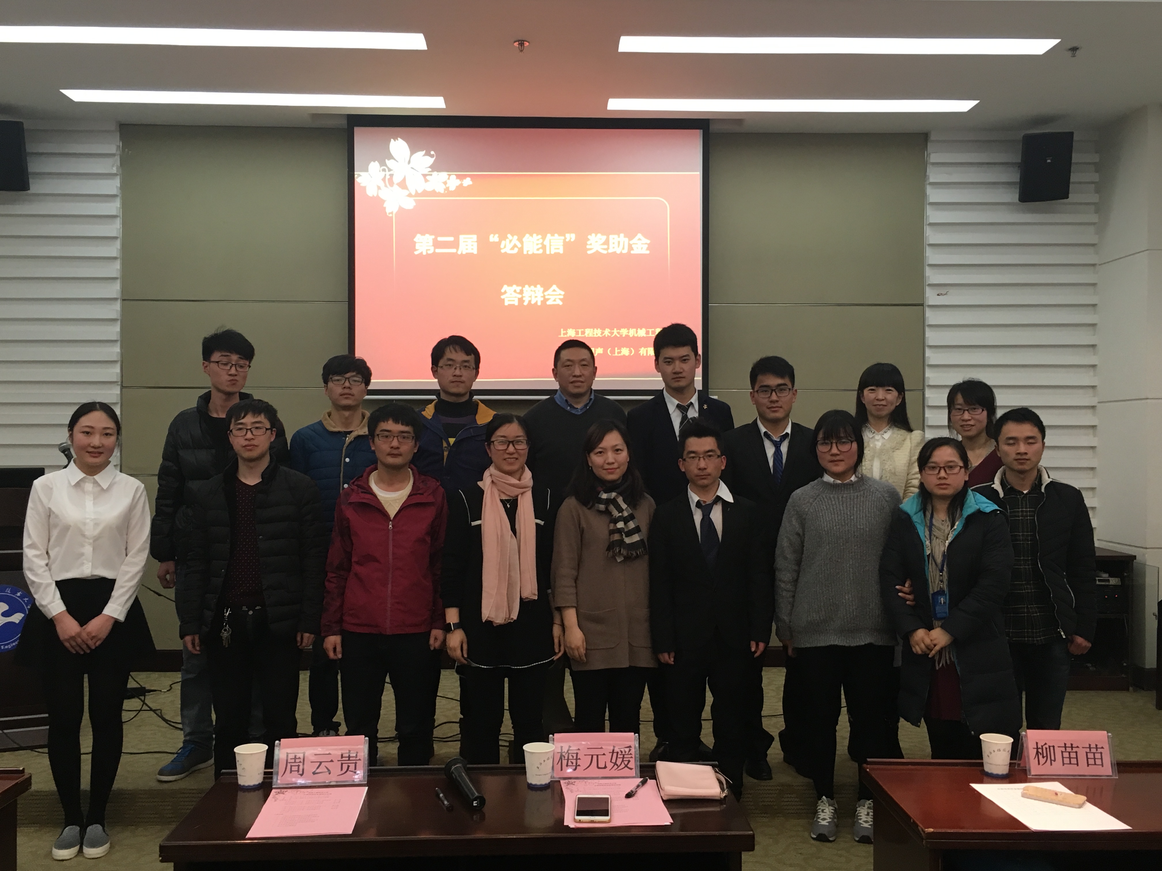 答辩环节,来自机械工程学院和材料工程学院的10名选手通过PPT演讲的方式展示自己学习、工作和生活等各方面情况,并现场接受专家评委的提问,最终5名同学脱颖而出,获得第二届“必能信”奖助金。最后,必能信超声(上海)有限公司人事经理王瑜作总结发言,她简要介绍必能信与工程大的结缘过程,并热忱欢迎更多的同学加入到必能信超声(上海)有限公司。