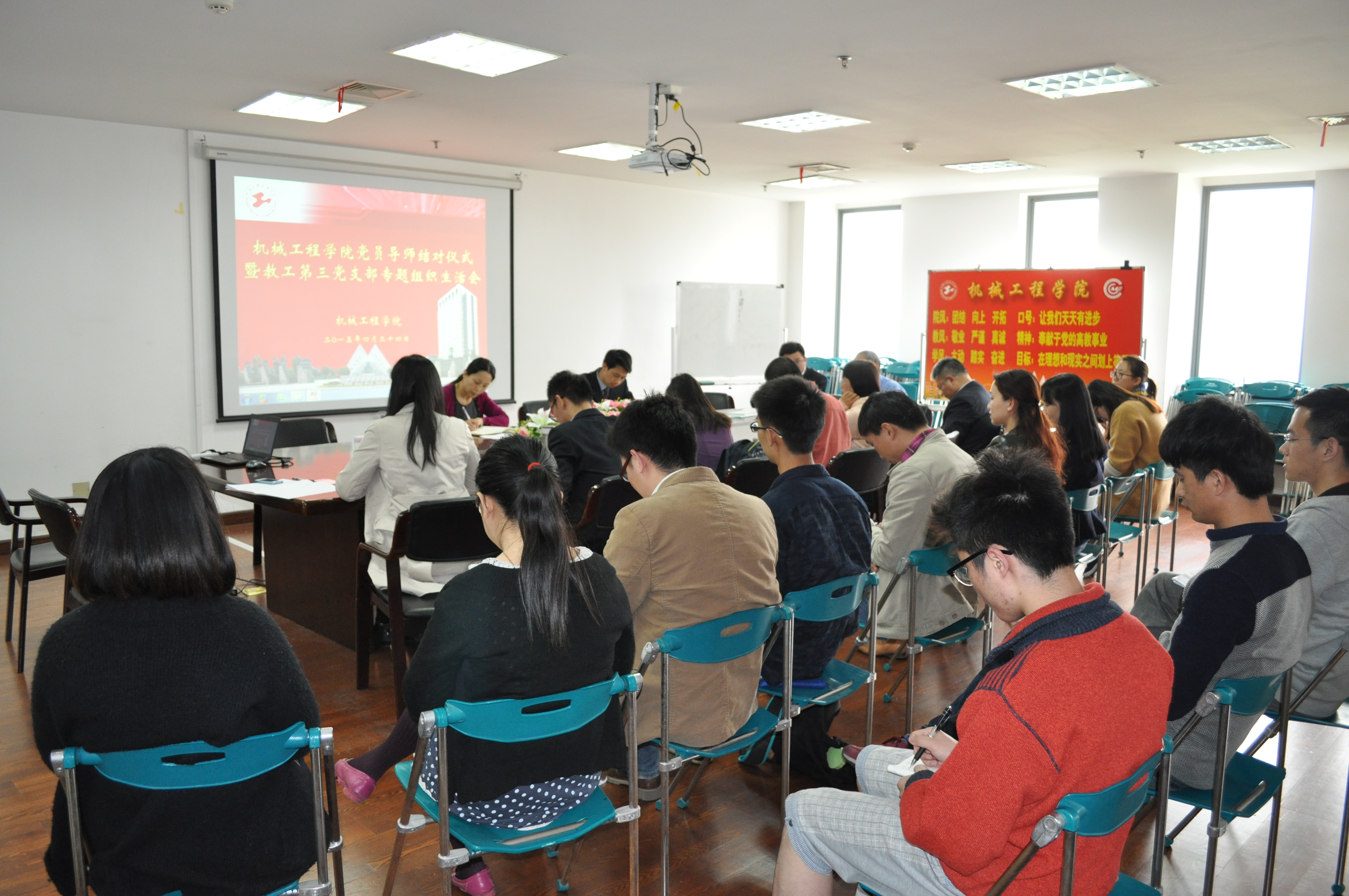 为了充分发挥党员教师的示范引领及辐射作用,进一步推动广大新教师更好更快地成长,机械工程学院教工第三党支部于4月24日下午举行了“党员教师结对活动”。校组织部朱良博老师、管理学院李旭芳老师、汽车工程学院潘爽老师等观摩此次活动。