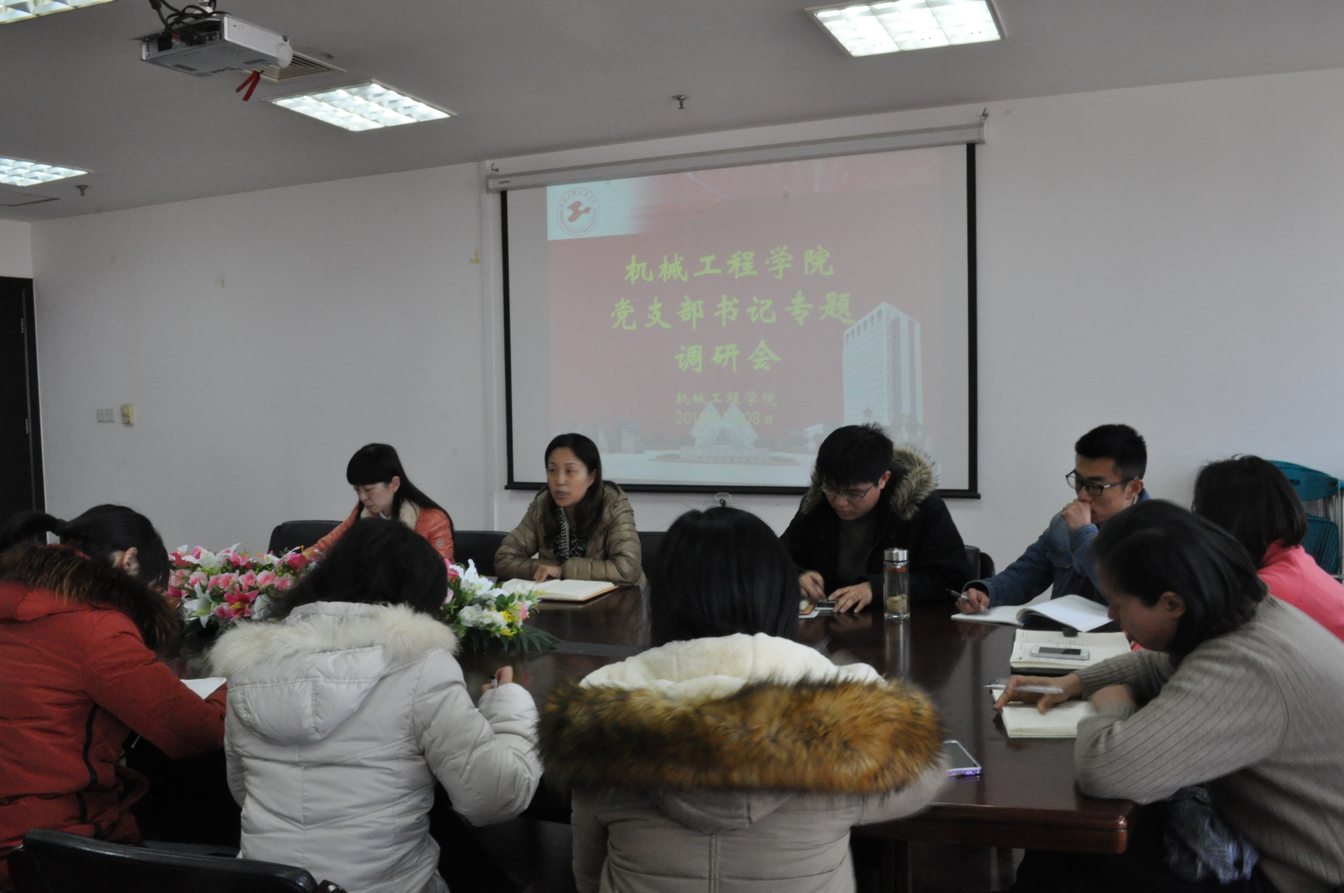 1月8日下午,机械工程学院在行政楼1208室召开党支部书记专题调研会,机械工程学院党委书记虞蓉、党委副书记梅元媛以及各党支部书记参加会议。