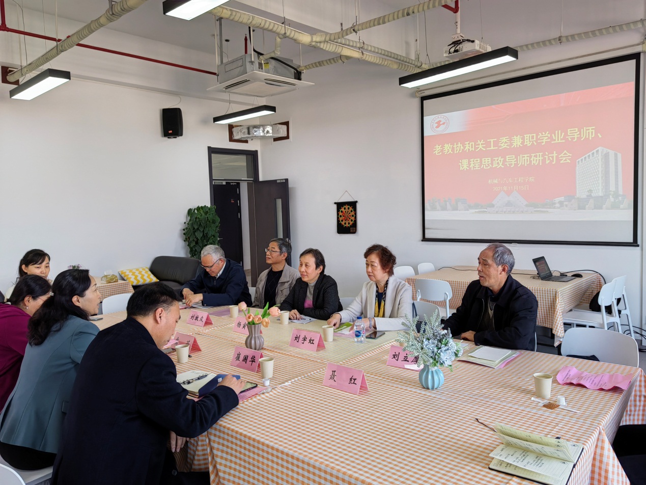 11月15日,金沙威尼斯欢乐娱人城(以下简称“机汽学院”)在交通大楼8B605召开老教协、关工委兼职学业导师、课程思政导师研讨会。机汽学院党委书记虞蓉、院长崔国华、机汽学院老教协成员、教学督导办主任沙玲、青年教师代表徐斌等参加会议。研讨会由机汽学院党委书记虞蓉主持。