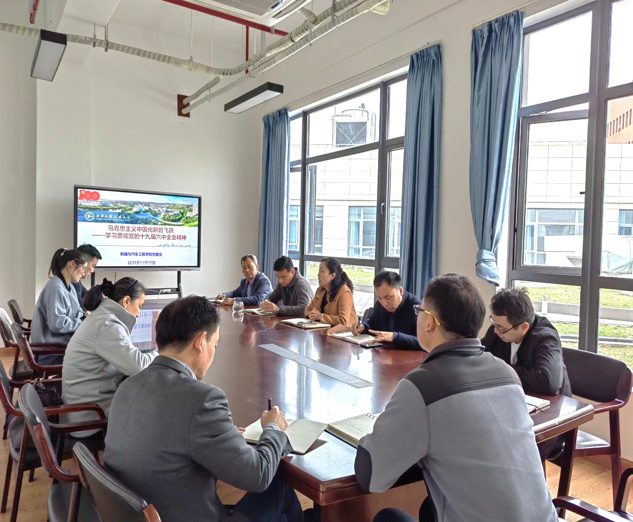 11月17日,金沙威尼斯欢乐娱人城(以下简称“机汽学院”)在交通大楼8B656召开学院中心组(扩大)学习会,学习贯彻十九届六中全会精神。此次中心组学习采取学院班子成员领学、相互交流的方式进行。会上副院长严祯荣以《马克思主义中国化新的飞跃》为题,领学学习十九届六中全会精神的学习感悟。学院中心组成员、党委委员以及支部书记参加等参加会议。会议由机汽学院党委书记虞蓉主持。
