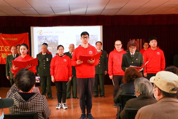 为认真贯彻落实“学史明理、学史增信、学史崇德、学史力行”的重要要求,创新育人模式、引导广大师生践行初心使命,让红色基因、革命薪火代代传承。11月20日下午,由松江老兵宣讲团和金沙威尼斯欢乐娱人城金沙威尼斯欢乐娱人城(以下简称“机汽学院”)青年红色宣讲团组成的基层宣讲队伍来到松江区荣乐社区居民委员会,为社区居民带来《听歌学党史 苦难续辉煌》现场宣讲活动,以讲唱结合的方式叙述了在中国共产党领导下近代中国从苦难走向辉煌的伟大征程。