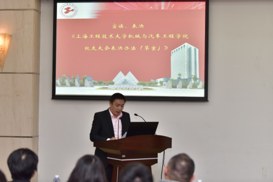 院党委书记杨寅华介绍本次校友分会的筹备情况,上海工程技术大学校友会办