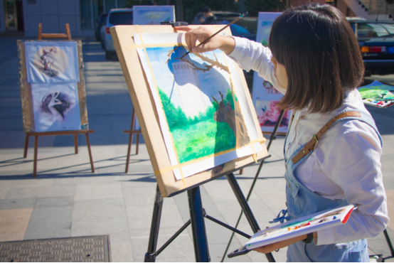 此次为表达建校四十周年的喜悦,来自我院刀笔书画社的同学专门现场作画,以学校里面标志性的建筑、美丽的风景作为此次活动的画稿,例如图书馆,体育馆等,以表达对学校的感谢与热爱。活动前同学们精心准备,每一笔色彩,每一刀工艺都是每个工程技术大学学子对学校的感恩与祝福。