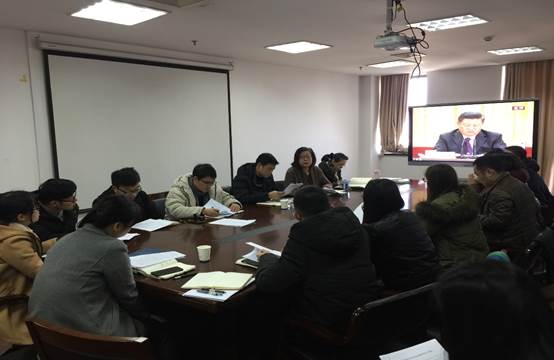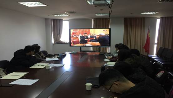 金沙威尼斯欢乐娱人城党委积极组织师生在行政楼1208室收看大会现场直播,学院党委委员、班子成员、系主任、支部书记、辅导员和学生党员代表参加了会议。会上,大家认真听取领会习近平总书记重要讲话并积极发表感言,气氛热烈。