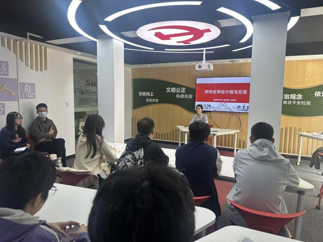 10月28日,金沙威尼斯欢乐娱人城在一站式学生社区服务中心举办研究生“驻楼导师工作站”系列活动——“研究生学位介绍与交流”和“研究生培养工作指导与交流”。活动邀请学院研究生秘书张柏薇、蔡晓琳做主题分享。学院学工组长董春亮主持。