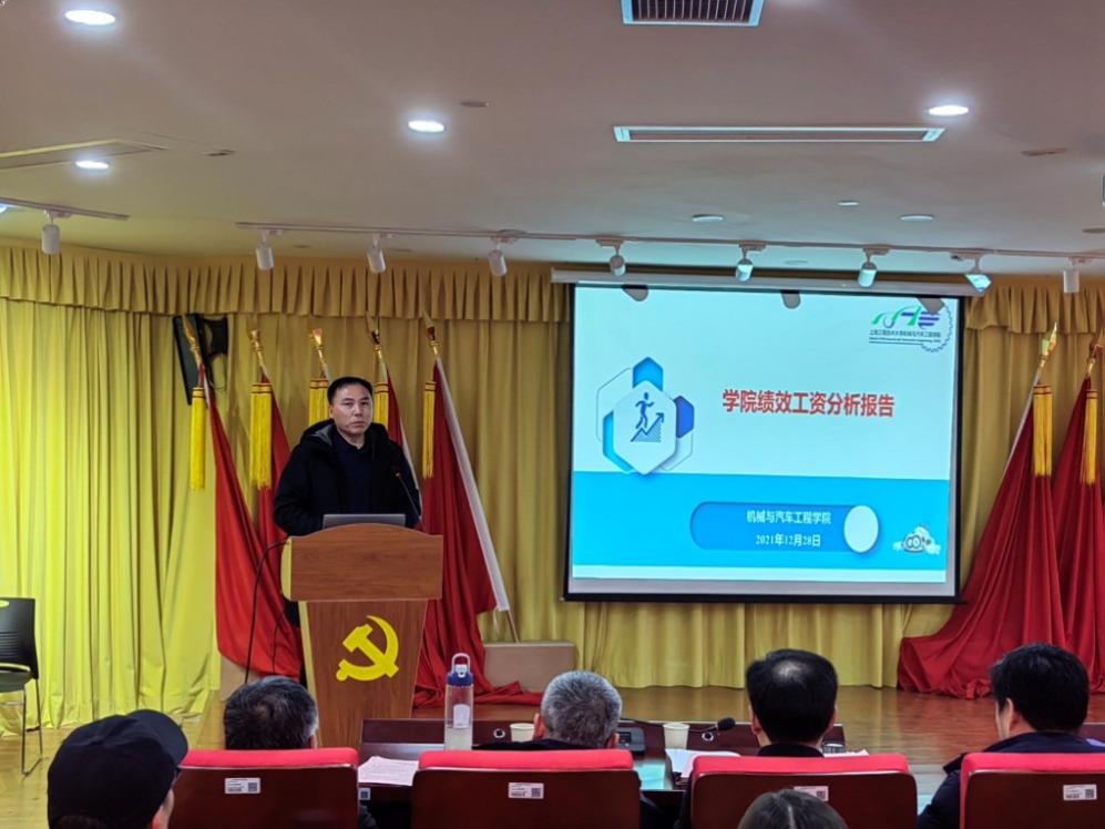 崔国华院长对各系室一年来的付出和努力给予肯定,并指出2021年学院在全院教职工的共同努力下,各模块工作稳步推进的同时,较去年取得了一定的进步。崔院长表示,希望各系室2022年再接再厉,争取更大的成绩,为申请博士点以及学院转型发展做出更大的贡献。会上,崔院长代表班子落实“学院办实事工程”,做了学院绩效工资分析报告,积极回应学院教职工关切的问题,为与会人员详细分析学院近三年的绩效情况,分析存在的问题及原因,并提出了持续优化的方案。