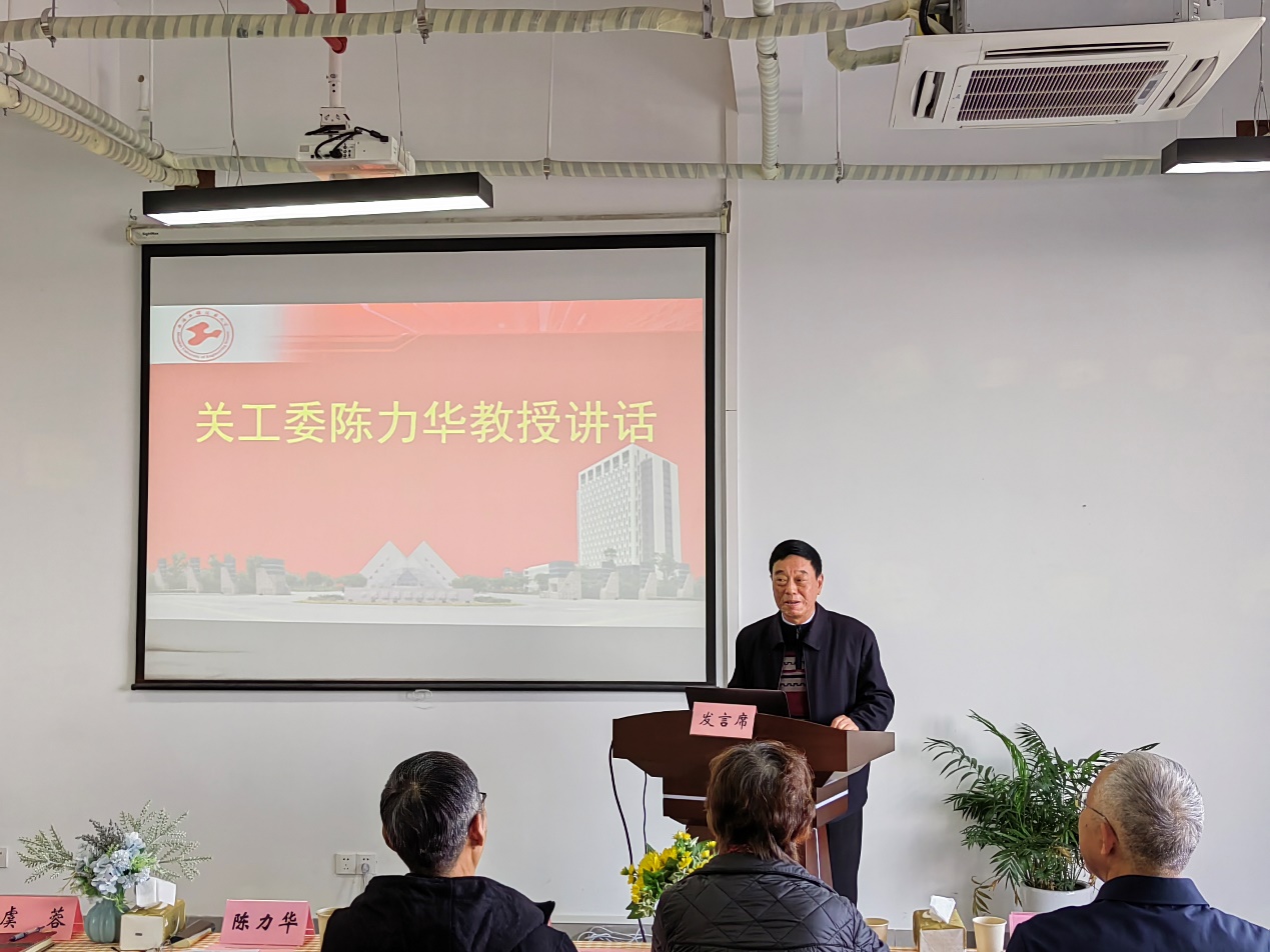 校教学督导组组长、老教授协会副会长、学院关工委委员陈力华教授出席此次会议并讲话,陈教授用“拜年、祝贺、努力、希望”四个关键词寄语与会人员。陈教授向在场师生致以节日问候,预祝大家新春愉快、心想事成,并祝贺学院2021年取得的一系列成绩。陈教授表示,机汽学院学生规模大,男生多,需要努力达到“特色显、品牌优”的目标,呈现出学校“排头兵”的样子。同时,陈教授进一步提出关怀和希望,希望机汽学院能主动对接行业、产业发展,充分服务区域经济发展,创建“人人为学院,学院为人人”的文化,投入精力、提高能力、形成合力,切实推动学院和学校发展,为国家和社会培养优秀人才。