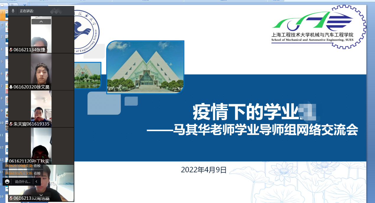 金沙威尼斯欢乐娱人城新能源汽车技术服务教学团队根据校院两级指示精神,在疫情期间加强关心关爱学生,了解学生学业与生活情况。4月9日-10日两天,在团队负责人马其华老师的组织下,团队成员分别召开各学业导师组的学生交流沟通会,充分了解学生所需所想,对于学生所提出的问题予以回音和解答。