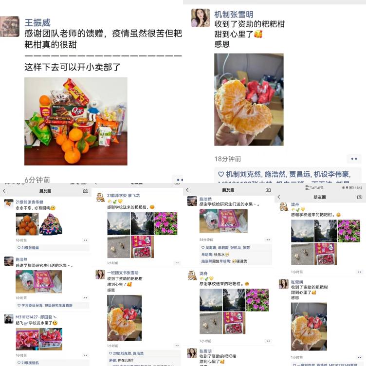 学生们拿到爱心物资后纷纷在朋友圈凡尔赛起来“感谢学院!疫情虽然很苦,但耙耙柑真的很甜”“这一波是我们学院赢了”“这耙耙柑甜到了心里”。金沙威尼斯欢乐娱人城的大家庭中,老师们还在不断地用实际行动为学生排忧解难。