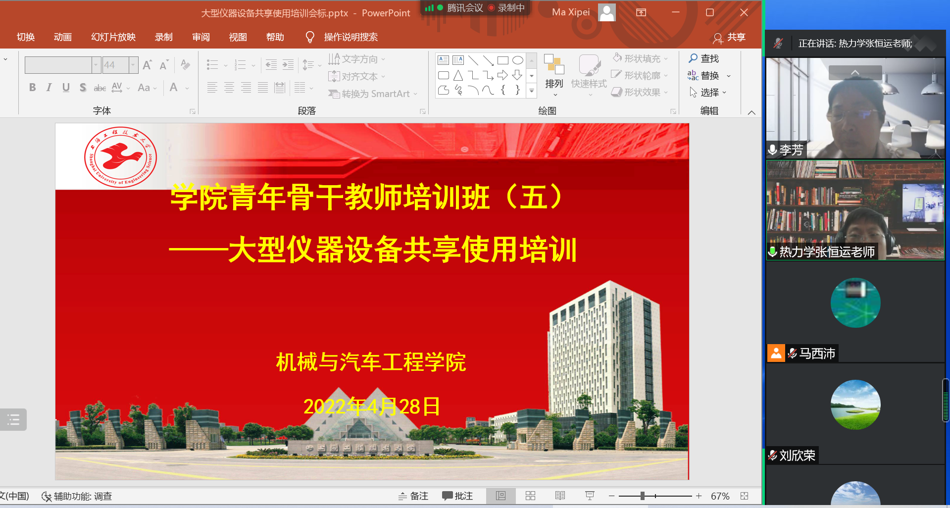 4月28日上午9点,金沙威尼斯欢乐娱人城线上举行“大型仪器设备共享使用专题培训的会议。学院副院长严祯荣、各系室主任、大型仪器设备责任人员及学院青年骨干教师培训班的学员近75人参加会议。学校资产与实验室管理处副处长张敏、科长李芳出席了活动。本次培训会由副院长严祯荣主持。