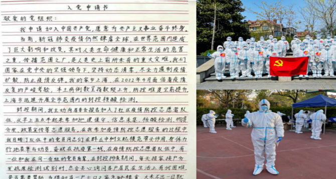 学院全体党员、入党积极分子积极响应号召,参与校内外抗疫志愿服务工作。迄今报送校内外防疫宣传典型事迹近70篇,其中学院党委防疫纪实《筑牢坚强“红色阵地“,尽锐出战”疫“线担当》被上海基层党建网报道、学院党委车辆工程研究生第一党支部防疫事迹被上海教卫党建微信平台报道、民主党派骆佼老师积极投身社区防疫,她将教学内容运用到抗疫实践中,受到社区居民和居委会党组织的一致好评,她的事迹在《新民晚报》、《松江报》刊发。学院多个党支部的志愿防疫事迹在学校腾飞新闻网、工程大党建平台、学院网站进行宣传。汽车服务工程专业封哲宇同学在防疫一线提交入党申请书,表达了向党组织靠拢、听党指挥的坚定决心,用实际行动让党旗在一线高高飘扬。