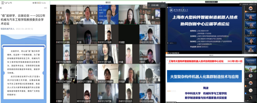 云端学术,守好科研“主阵地”。学院教授委员会和院“劳模工作室”教授以学术为要,主动谋划,精心推出“云端学术论坛”5场,营造浓厚学术氛围;围绕学科发展和申博工作,学院成功召开上海市大型构件智能制造机器人技术协同创新中心云端学术论坛,20多位校内外专家、学者、企业同行开展16场次,超4000人次参与,特殊时期有效激发师生的科研热情,为师生带来学术盛宴,努力践行防疫与重要发展任务两不误。