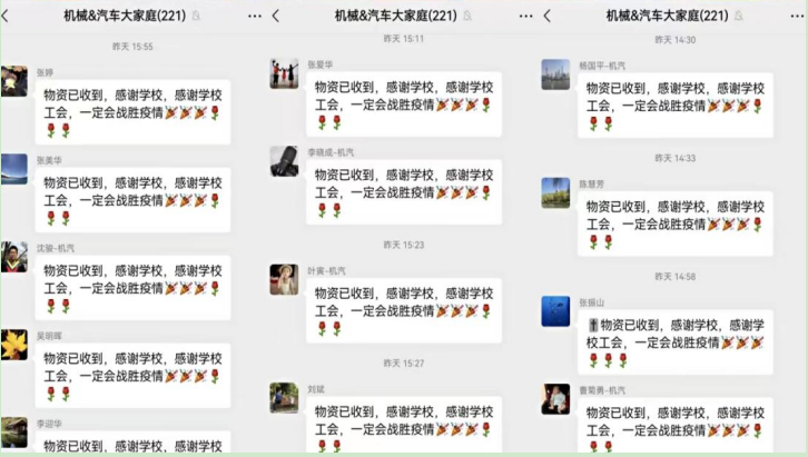 学院党委全面动员学院资源,积极筹措防疫物资,累计获捐爱心物资10万余元。学院机械设计系的青年教师刘斌老师出资2万元购买防疫物资,用大爱之心,践行关爱学生。学院产学研合作企业、科研团队也以实际行动阐释了“一切以学生为本”的育人理念,践行了当代教师的初心使命和责任担当。