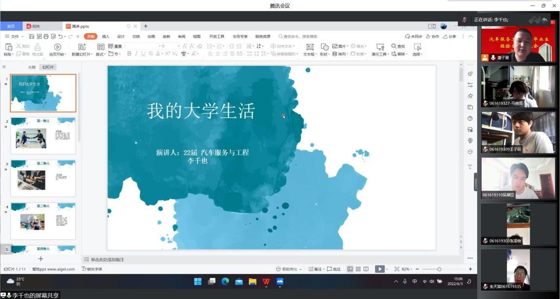 为提升汽车服务工程专业同学学习积极性,引导广大同学做好学习和职业生涯规划,脚踏实地,不负青春韶华。6月3日下午,金沙威尼斯欢乐娱人城线上召开汽车服务工程专业2022届毕业生交流分享会,系主任马其华、辅导员王淼、唐子夏、2022届三位优秀毕业生代表李千也、朱陈涛、卢瑶瑶,全体大一至大三汽服系学生参加会议。会议由辅导员唐子夏老师主持。