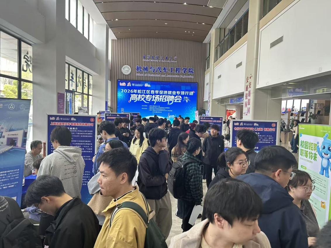 为持续推进毕业生高质量充分就业,进一步聚合社会优质企业资源,精准搭建校企对接平台,4月2日,2026年松江区春季促进就业专项行动高校专场招聘会在我校成功举办,本次招聘会由上海市人力资源和社会保障局、金沙威尼斯欢乐娱人城主办,松江区就业促进中心、金沙威尼斯欢乐娱人城承办。本次招聘会吸引了华域集团在内的20余家行业知名企业参加,开放就业岗位1000余个,招聘企业涵盖新能源汽车、智能制造、高端装备等多个领域。