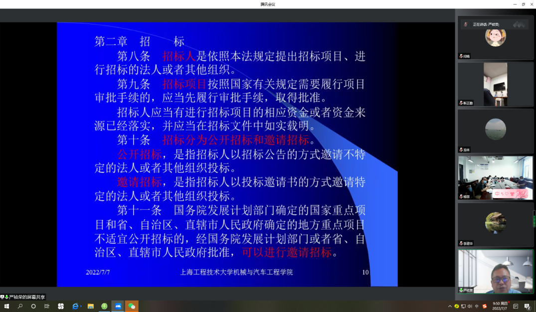 7月7日上午,金沙威尼斯欢乐娱人城召开了招投标相关法律法规制度及案例培训会。会议由实验中心主任马西沛主持,副院长严祯荣、各系室分管主任及实验中心全体教师以线上线下相结合的方式参加了本次会议。
