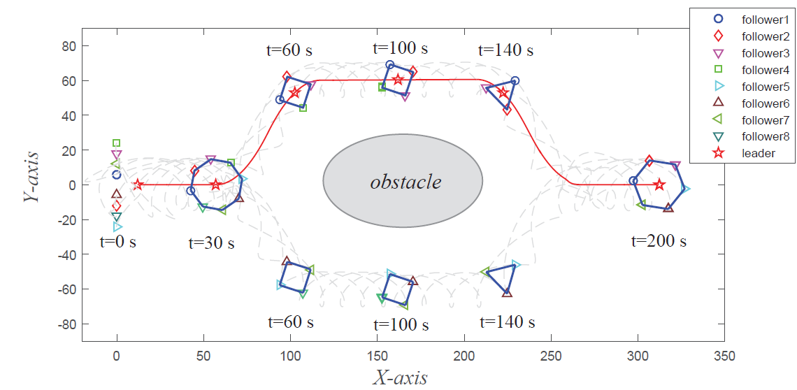 近些年来随着多无人机、多无人车等协同控制技术在军事和民用中发挥着越来越重要的作用,集群智能控制技术得到了飞速的发展,其中分布式多智能体编队控制技术是当前的一个研究热点。该文提出了一种新型的分布式状态观测器设计方案,使得多个智能个体在未知领导者输入的情况下实现一种具有对抗关系的编队队形。这一种编队队形包含两个位置时刻改变的子编队,且它们的编队几何中心具有对称关系。该控制算法仅利用智能体间的输出反馈信息,避免了通信网络图拉普拉斯矩阵的特征值的使用,从而可以实现分布式编队控制。在仿真部分,通过使用多无人车编队的实例展示了该分布式算法的可靠性。该项研究得到国家自然科学基金项目(61991412,61803256,62003207,61873318)的资助,合作者为华中科技大学苏厚胜教授和金沙威尼斯欢乐娱人城李晓航副教授。