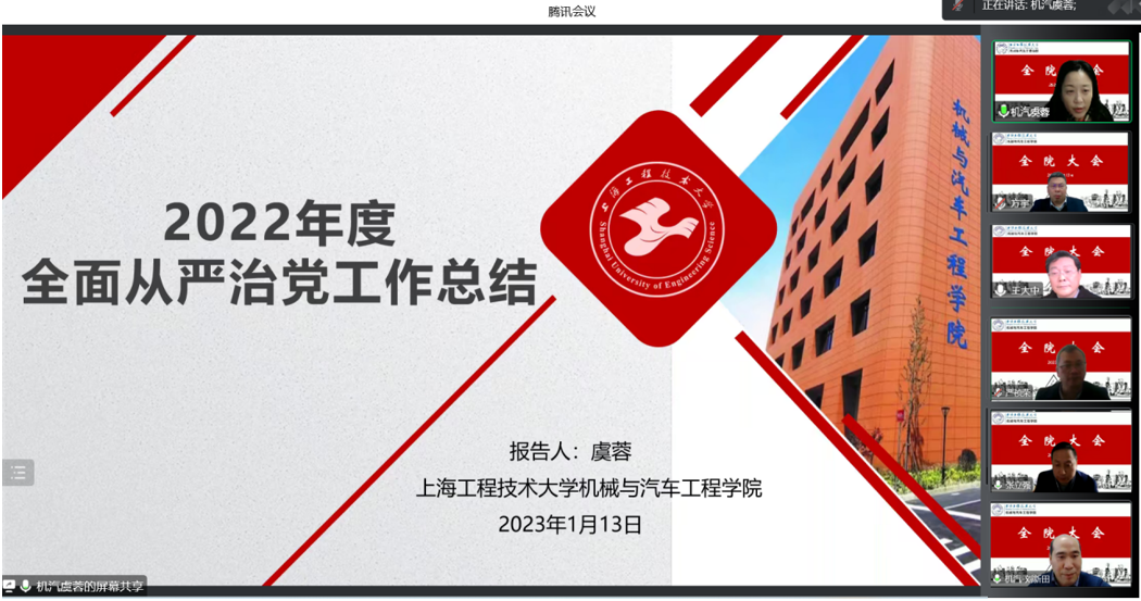 为做好全年各项工作总结,推动学院整体发展,加强学院全体教师对学院事业的了解,金沙威尼斯欢乐娱人城于1月13日线上召开2023年全院大会,学院全体教职工线上参会。会议由学院党委书记虞蓉主持。