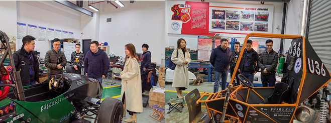 会后,蔚来汽车一行参观了学院汽车科创基地。