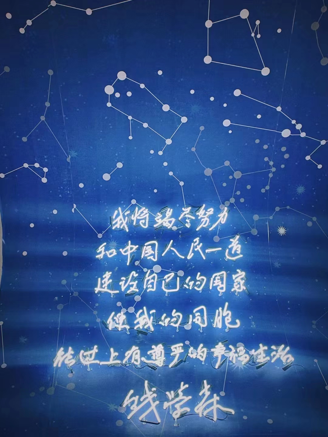 讲解结束前,讲解员送给了我们一段钱学森讲过的话:我将竭尽努力和中国人民一道建设自己的国家,使我的同胞能过上有尊严的幸福生活。听后大家都为之震撼,深刻体现了钱老热爱祖国、一心报国的崇高理想,更加由衷地钦佩钱老的爱国精神与他回国后投身航天事业的奉献精神。