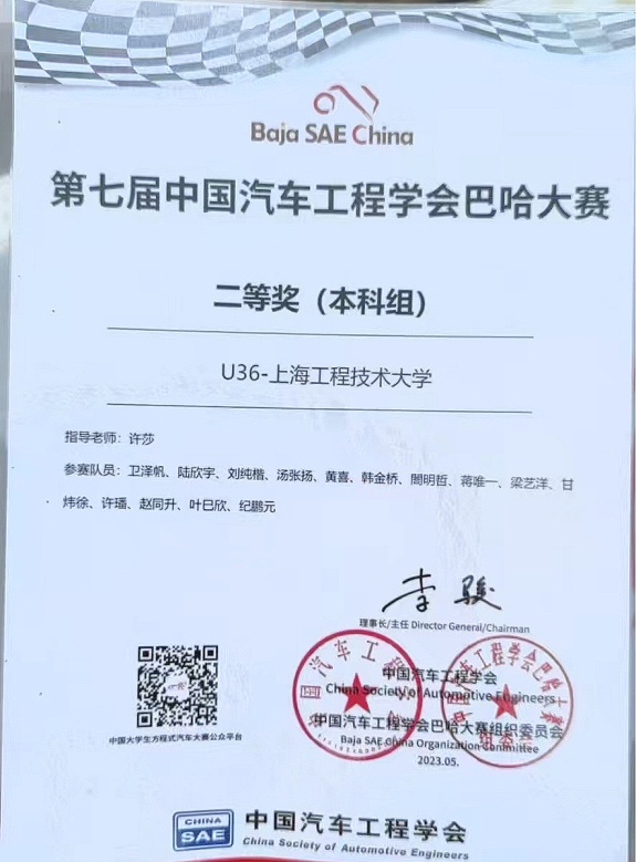 通过设计报告、商业营销、操控性、单圈计时、耐力赛等多个项目的激烈角逐,金沙威尼斯欢乐娱人城龙腾巴哈车队战斩获本科组综合成绩二等奖。