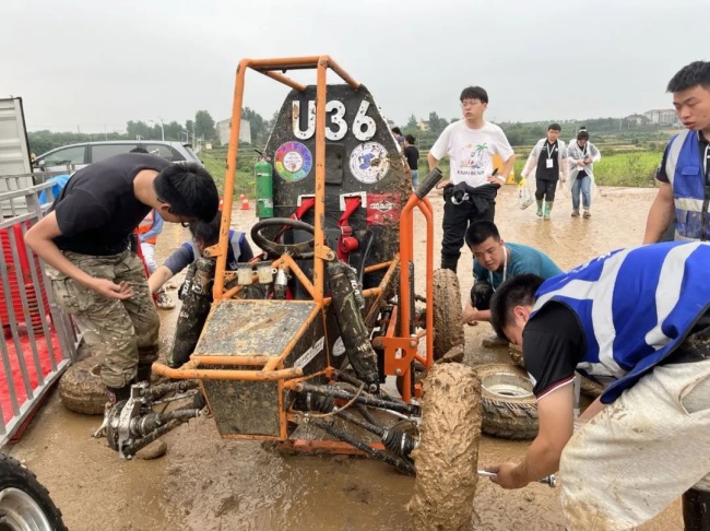 本届大赛期间,襄阳连日阴雨,大雨冲刷后的泥泞赛道,难度升级,挑战升级。龙腾巴哈车队克服重重困难,在比赛中不断挑战自我,解决了一个又一个突发问题,展现了出色的理论、实践技能及团队协作能力,让车队一年的努力绽放了成果之花。