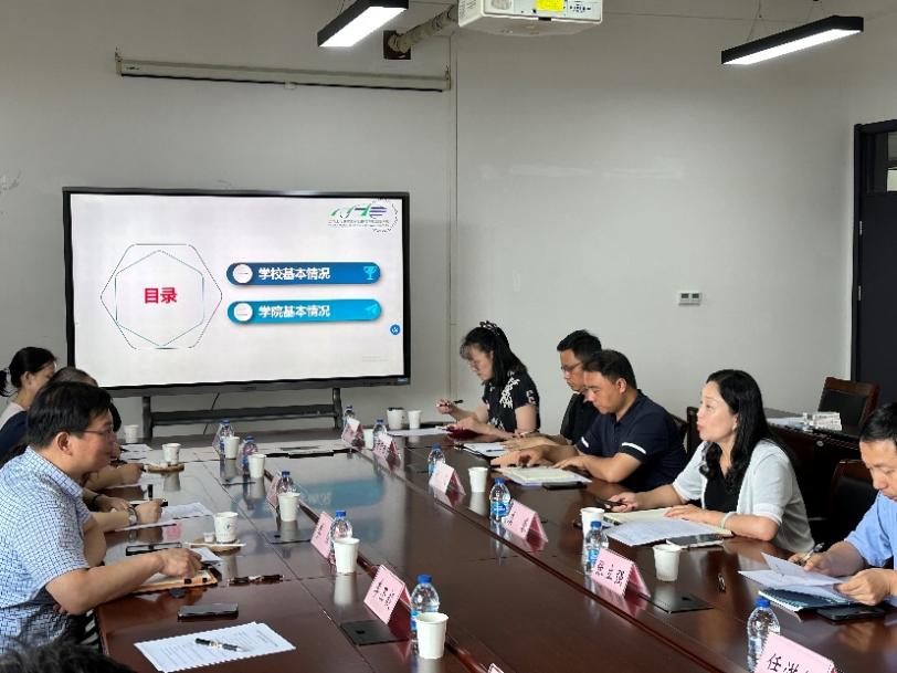 虞蓉书记对季强副校长一行赴我院调研表示热烈欢迎,结合学院宣传片内容,虞蓉书记介绍了学校及学院的基本情况,就学院在党建工作、人才培养、学科建设、科学研究、合作教育、对外交流方面的特色做法和主要成果进行交流分享。她强调,学院高度重视深入一线开展调查研究,希望以此次调研交流活动为契机,建立双方长效沟通交流机制,为党建共建、人才共育、项目共研、资源共享搭建平台,推动双方各项工作提质增效。