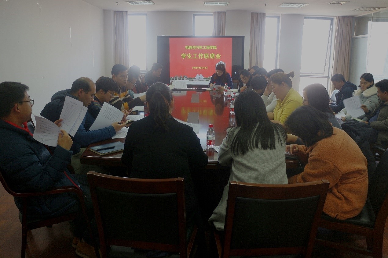 12月13日下午,金沙威尼斯欢乐娱人城在行政楼1012召开学生工作联席会。各系室主任、宿管部老师、学院全体辅导员老师参加了联席会,会议由学院党委副书记王东阳老师主持。