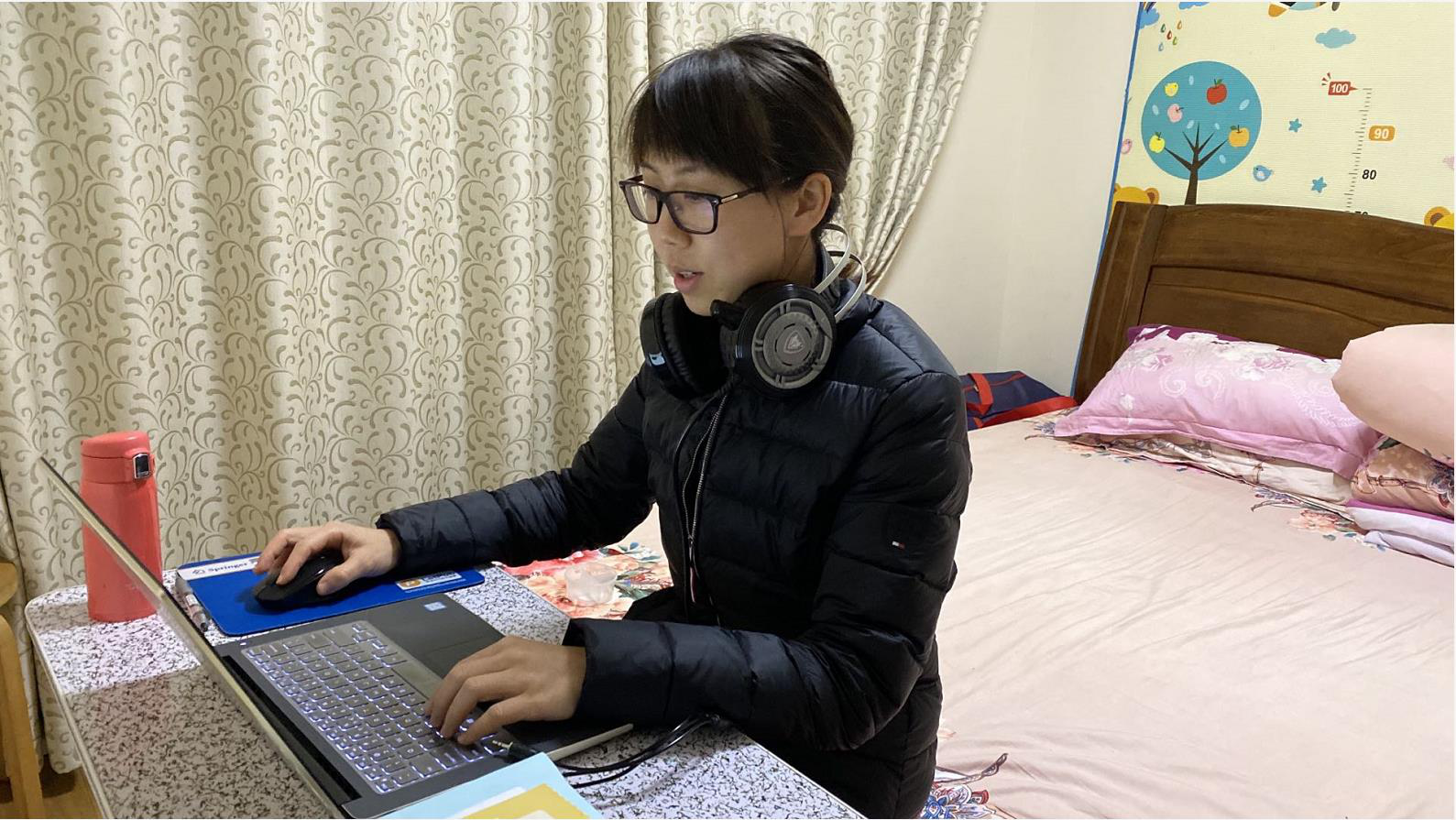 “虽然我身处疫区,但是在学院领导老师的关心下,在团队的共同努力下,课堂终于顺利开播,网络顺畅,学生互动性高,随堂练习顺利开展……,连日来种种焦虑,此刻一扫而光。”任课老师范平清感叹道。身在湖北武汉,受到疫情的影响,家里物资逐渐缺乏,纸张也是愈发捉襟见肘,但是为了更好地演示课程,儿子的作业本都被范老师“征用”了。随着在线教学的顺利进行,来自云端的师生互动让她倍感欣慰,一切都在痛并快乐中前行。