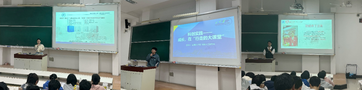 会上,来自汽车服务工程专业、机器人工程专业和智能制造专业的三位国家奖学金和上海市奖学金获得者朱冰婧、陶亚飞和王清锐同学为大家分享了自己的学习经验、科创经历和志愿服务事迹,介绍了大学生创新实验室平台以及各类创新实践活动的申请渠道。为在座的学弟学妹提供了全面完善的学习指南。