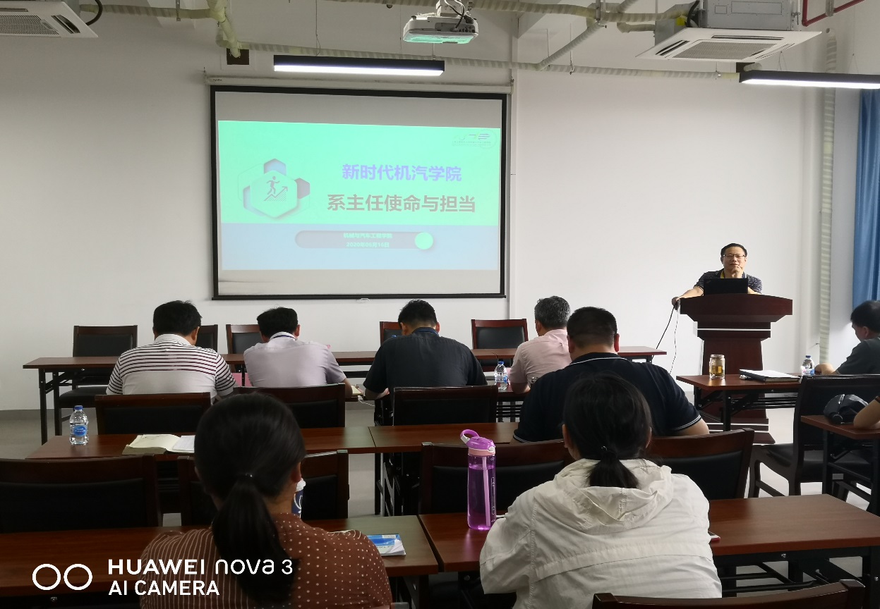 张华院长在会上做了“新时代机汽学院系主任的使命与担当”的报告。张院长结合学校、学院的发展历程和当下学院转型发展、学科评估和博士点申报工作的进展情况,分析了学院目前在师资、教学、科研、学科等发展方面面临的挑战和机遇,描绘了学院未来的发展愿景和蓝图。张院长指出系室主任的主要使命是:一是发展学科,凝练学科方向,引进人才、整合现有学科队伍,争做学科领头人;二是建设专业,围绕培养目标、培养方案,建设课程体系,实践教学体系;三是培养人才,实现科研育人、思政育人、实践育人等;四是开展科研,按照学科方向,组建稳定与交叉科研团队。张院长还对新一届系室主任提出六点要求:一是要提高政治站位,做政治的明白人;二是要提高思想觉悟,做发展的领路人;三是要提高领导艺术,做群众的贴心人;四是要提高服务水平,做奉献的热心人;五是要提高管理能力,做学习的有心人;六是要提高风险意识,做纪律的清醒人。