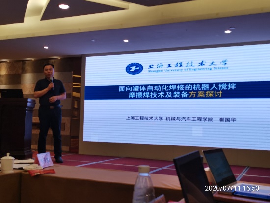 7月11日,我院人员与来自吉林大学、哈尔滨工业大学、长沙赛博机器智能有限公司等10余家高校、企业单位专家、学者共同参加了中集瑞江专用车智能技术研讨会。中集集团科技发展部总经理李东、中集瑞江汽车有限公司总经理王柱江及公司人力资源部、研究院等部门领导介绍了公司情况、发展趋势及技术需求。我院缪雪龙教授、崔国华教授先后做了搅拌车用增程新能源动力研发、面向罐体自动化焊接的机器人搅拌摩擦焊及焊接过程监控的大会报告。
