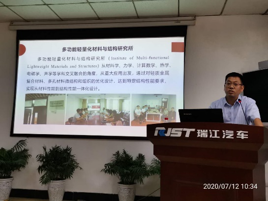 7月12日,我院与中集瑞江汽车有限公司联合举行了“工程大机汽学院——中集瑞江专用车技术交流会”,围绕中集瑞江专用车的技术需求及亟待解决问题,严祯荣、李培超、刘学文、傅允准、黄孝慈、叶筱等依次围绕铝合金液罐内壁腐蚀失效机理及治理措施、液罐车液体晃动数值模拟和防浪板优化设计、基于CAE技术的防浪板失稳开裂原因、铝合金罐局部热桥问题和整体绝热方案、危险驾驶和疲劳分心驾驶的检测与预警、混凝土搅拌车搅拌筒叶片优化设计及流场仿真等主题做了技术报告,并于企业技术人员进行了深度交流。