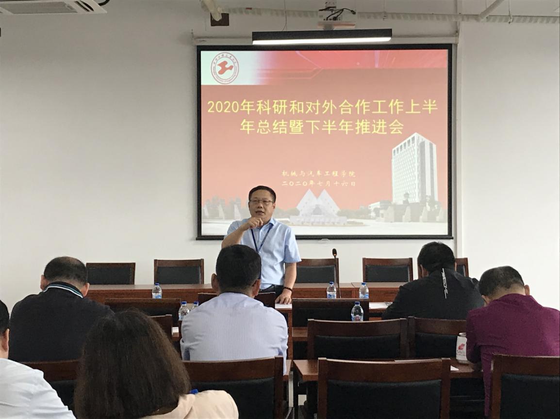 7月16日下午,机械与汽车工程学院在交通大楼8B605召开了2020年科研和对外合作工作上半年总结暨下半年推进会。会议由学院科研副院长严祯荣主持,张华院长、各系(室)中心主任、科研副主任及科研创新培育团队负责人等参加了会议。严祯荣副院长对学院上半年的科研和对外合作工作取得的成绩进行了总结汇报,并全面部署了下半年的工作任务,进一步明确了各系(室)中心的科研考核指标,最后对校科研工作例会的精神进行了传达。会上,各系主任和团队负责人代表就科研考核指标分配方案进行了深入交流和探讨。张华院长最后对各系(室)中心今后的科研管理工作提出了要求和希望,希望在各系主任和团队负责人的带领下,基层学术组织能活跃起来,营造学院和谐共进的科研氛围,激励教师的科研热情,以增强学院整体的科研实力。
